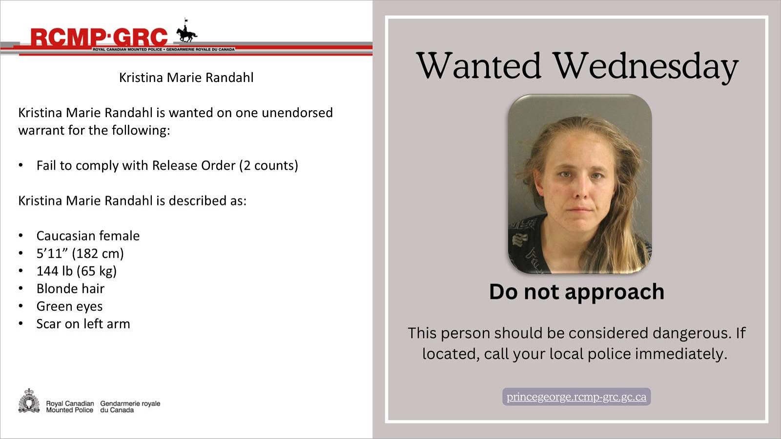 Prince George RCMP is requesting the public’s help in locating a wanted person - Kristina Marie Randahl.